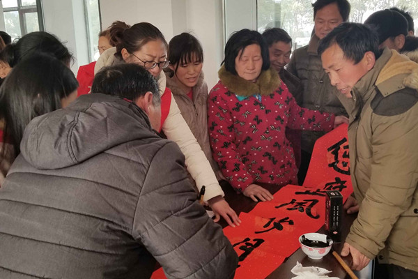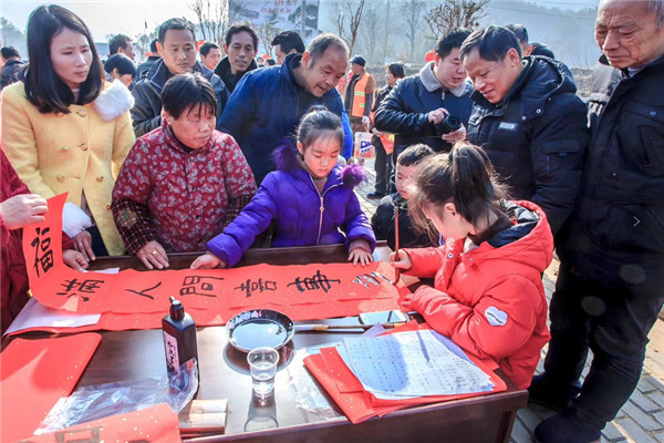 笔酣墨饱写春联 情寄祝福盼来年(韩绍 摄)