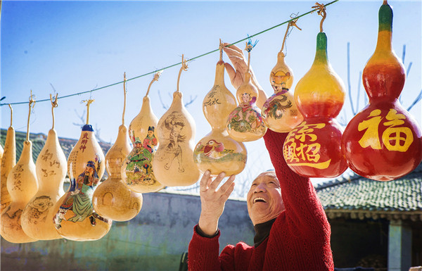 新春来临忙绘晒 工艺葫芦富乡村(李克荣 摄)