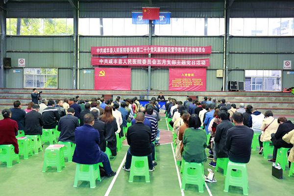 该县以“支部主题党日”活动、支部书记讲党课等为载体,集中开展“学”“讲”“考”活动,不断筑牢基层党员干部拒腐防变思想防线。 图为咸丰县人民医院主要负责人为全院200余名党员干部讲党课。