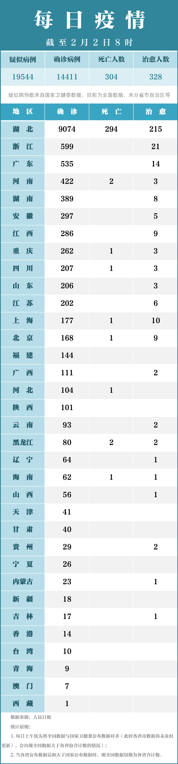 每日疫情 | 国内新型冠状病毒累计确诊病例14411例